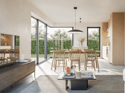 Alle woningen (variërende van 150m tot 200m²) beschikken over drie slaapkamers (en eventueel zolder) en een private tuin. Net als de appartementen zijn de woningen voorzien van warmtepompen in combinatie met vloerverwarming.